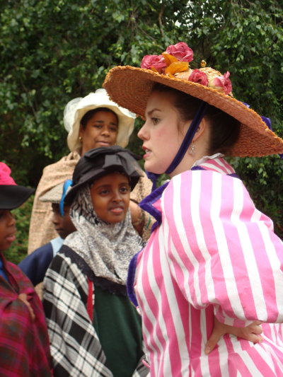 Summer 2009 saw another successful run of our outdoor production in Greenwich Park. Set in 1896, The Fields Beneath involves its young participants in the tensions between Londoners’ sometimes conflicting needs for open spaces and for new housing, all in the months leading up to Queen Victoria’s Diamond Jubilee. Children take on the roles of a Victorian school group on a nature walk, and are asked to make their own judgement about some topical questions.