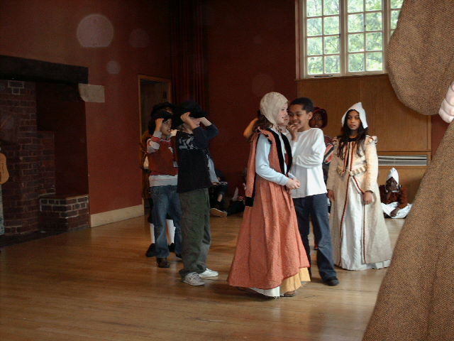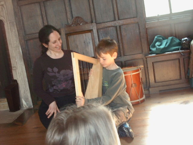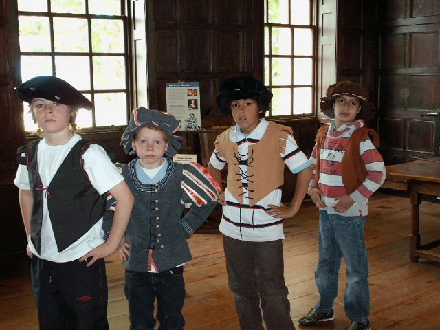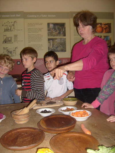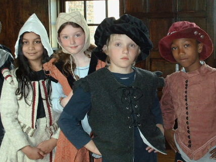 These were a series of full-day workshops, mostly based at Sutton House, with visits to Bromley Hall and St Augustine’s Church Tower, and a final reporting back session at school. The workshops were planned to enable the children to combine first-hand discovery with the opportunity of taking an active part in drama, music and dance. In some workshops there were other activities such as quill-pen writing, artwork and Tudor food preparation, and the children were encouraged to undertake research between workshops.