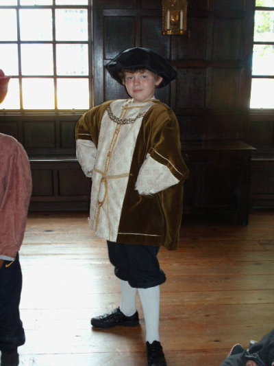 The participants and workshop leaders worked together on a promenade performance at Sutton House.. The audience of parents and friends encountered a sequence of scenes, with a song and presentation at each location and a final scene in the Wenlock Barn. The children produced reports and artwork; some of these are being incorporated into a project website, www.hackneytudors.co.uk, which is still being added to, and will be added to at each stage of the project. Some of the work will also be included in the planned project booklets, to be made available to all Hackney schools.